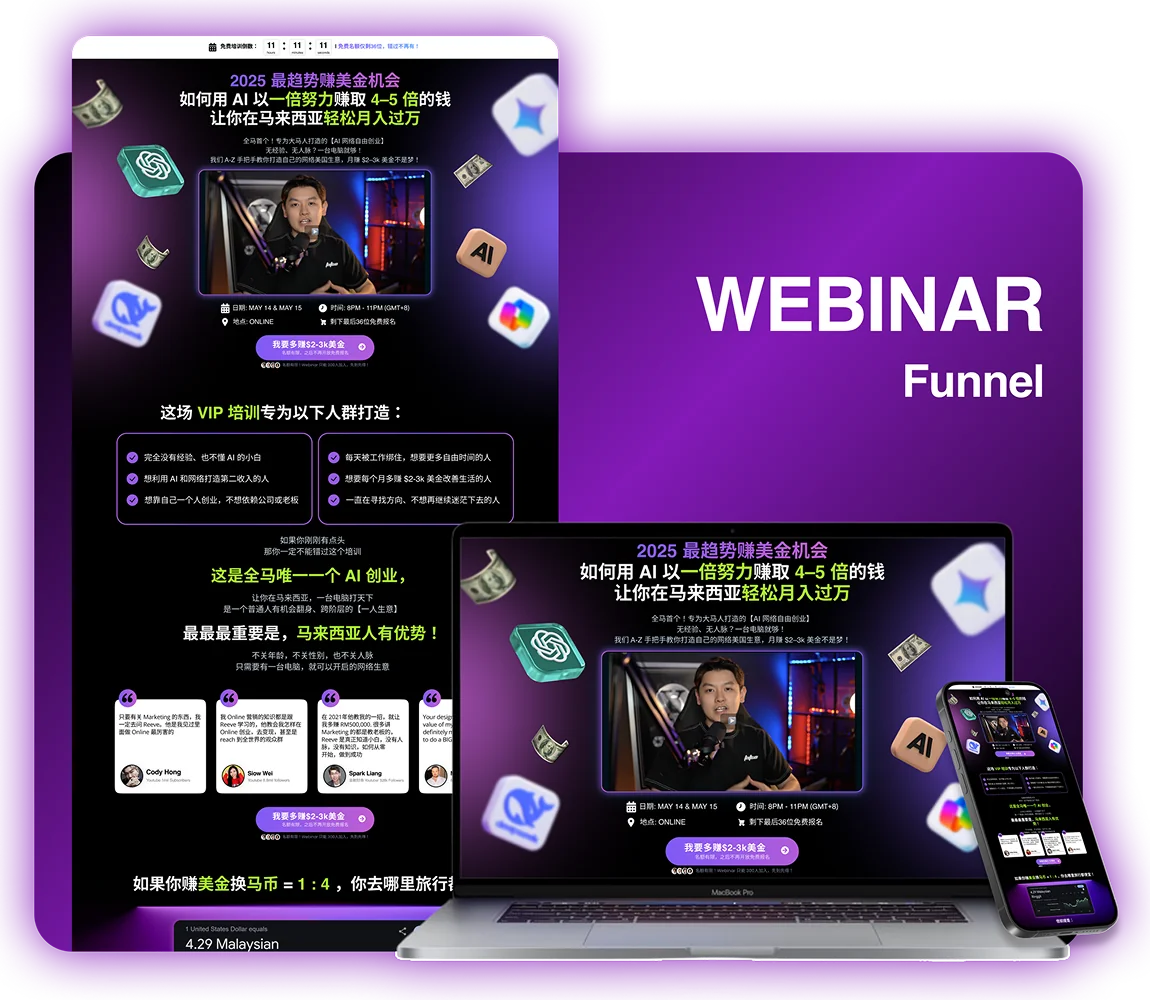 I create a full funnel layout and strategy based on your audience's psychology. Every page, every button, every word placement is intentional - designed to guide visitors naturally toward conversion.